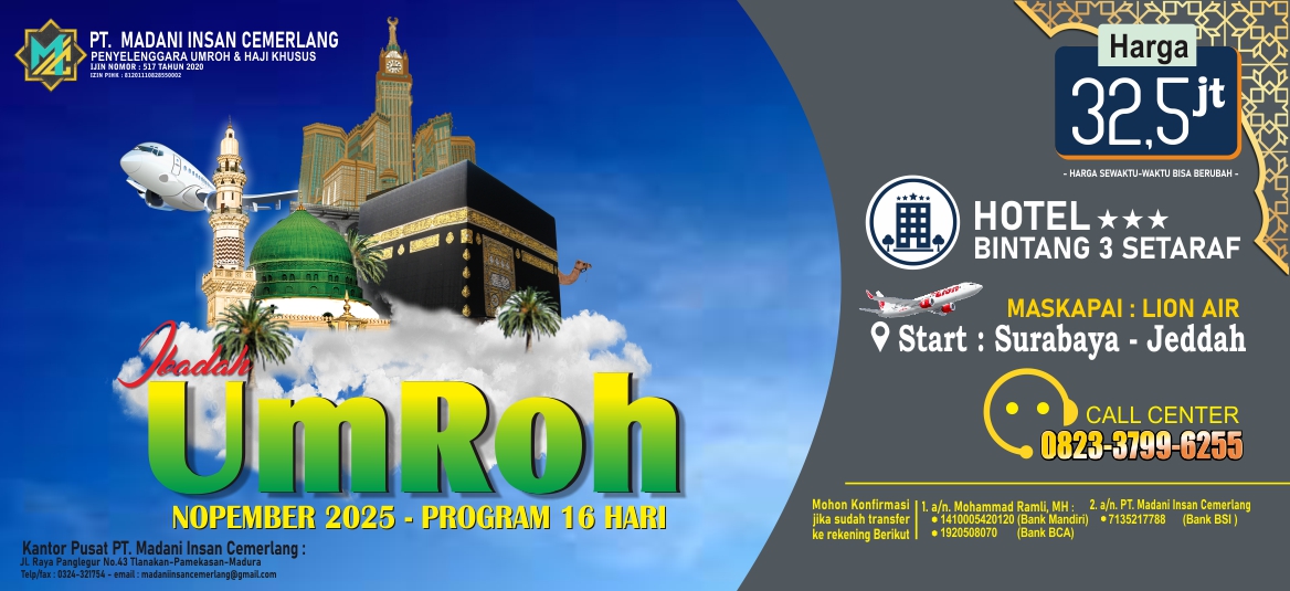 Pamekasan, Lembaga sertifikasi Umroh dan Haji khusus PT. Megah Tritunggal Mulia Surabaya (LSU MTM) mendatangi kantor Pusat PT Madani Insan Cemerlang (PT MIC) di Jalan…